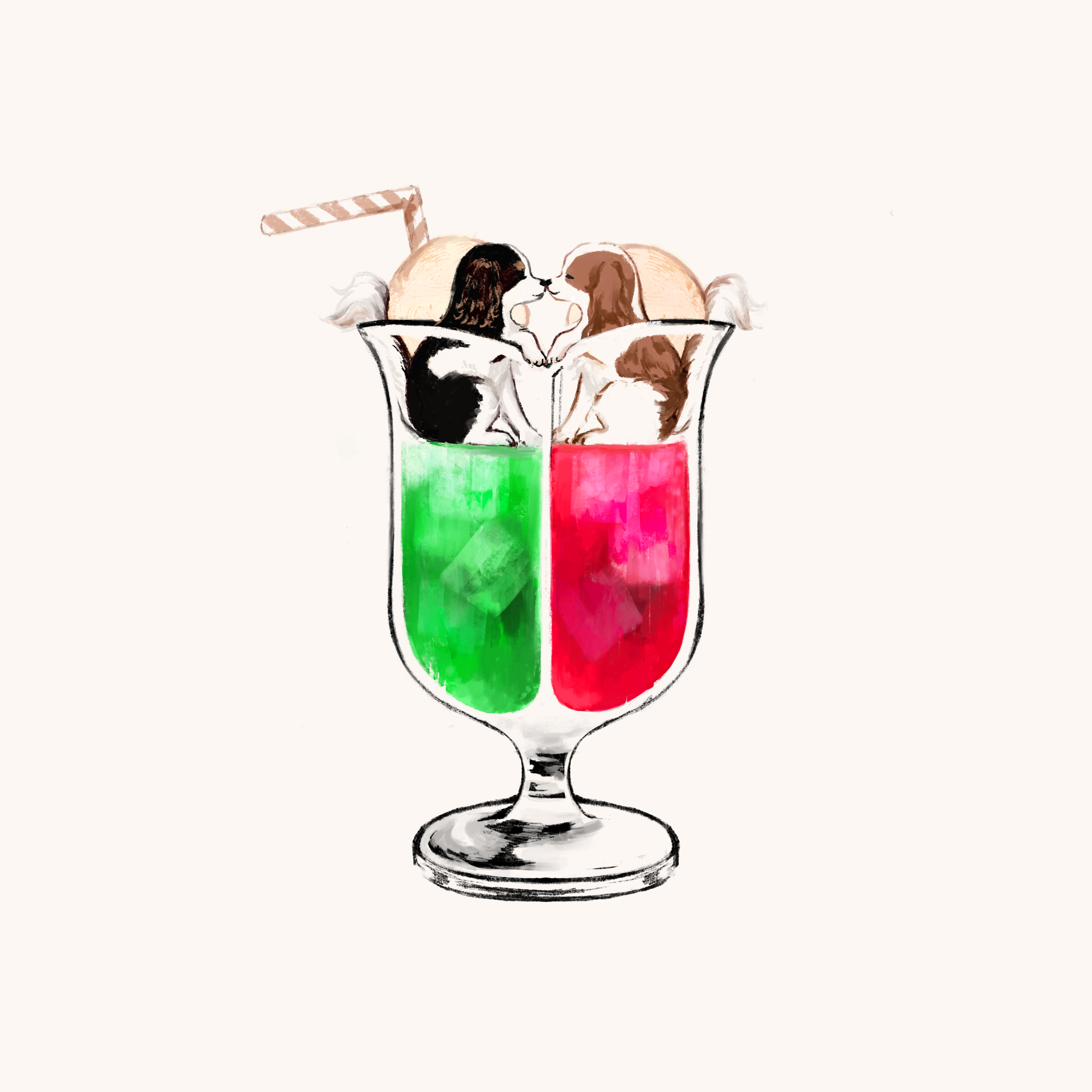 キャバリアキングチャールズスパニエルの2色クリームソーダ