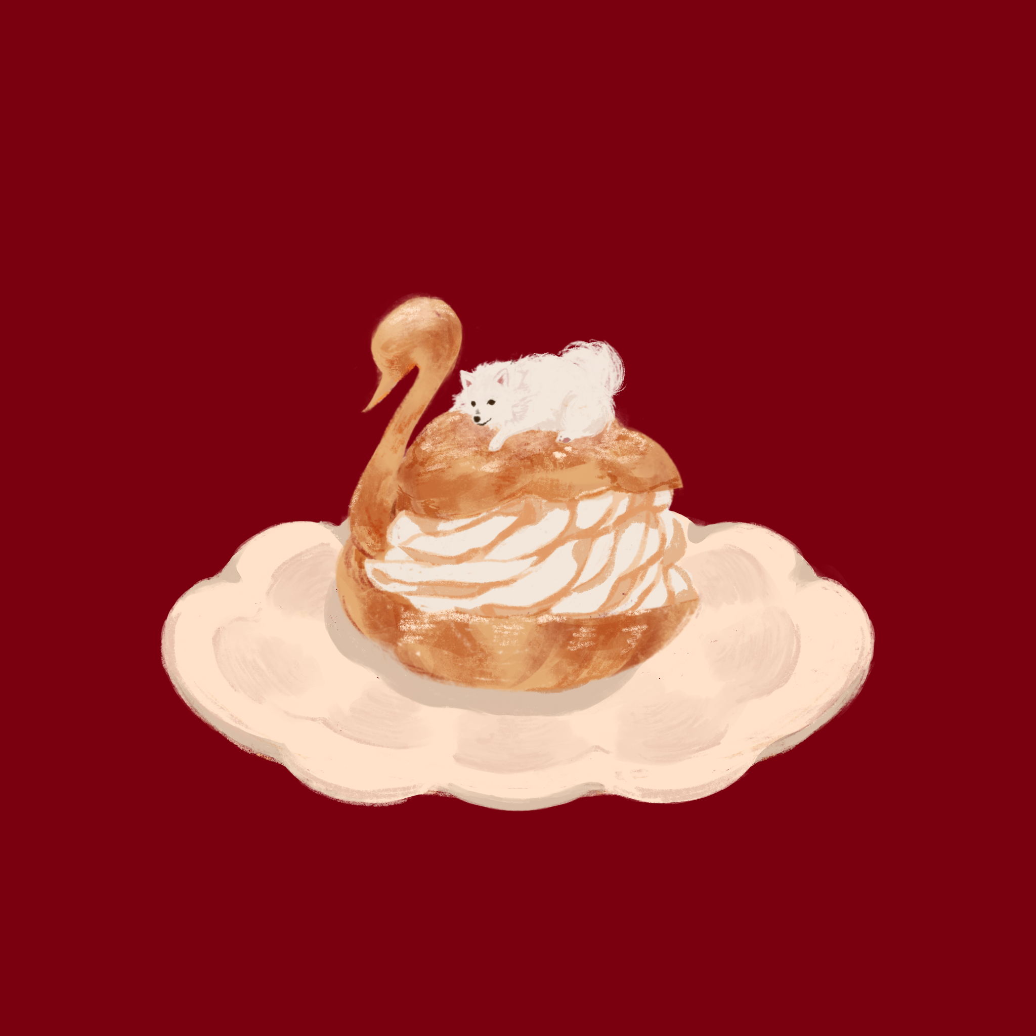 雲の上を旅する日本スピッツのスワンシュークリーム